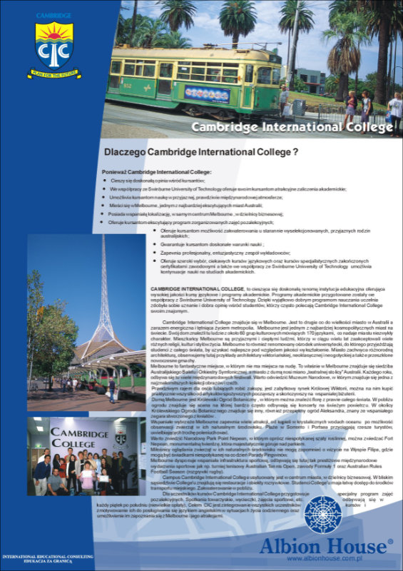 Cambidge ulotka szkoły językowej Albion House